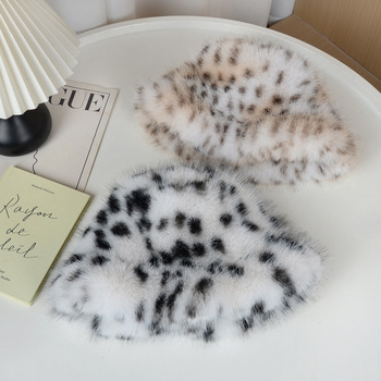 Leopar baskı Faux kürk peluş kova şapka kadın kış soğuk geçirmez şık kulak koruyucu Fisher şapka sevimli yumuşak kabarık balıkçı kap