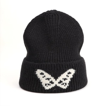 Toptan kadın kelebek jakarlı bere Baggy hımbıl kış rüzgar geçirmez kazak şapka moda sıcak örme şapka